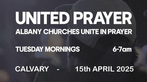 Gather with churches from across Albany at Calvary on Tuesday 15th April as we come together to pray for the upcoming Easter services and Alpha courses.